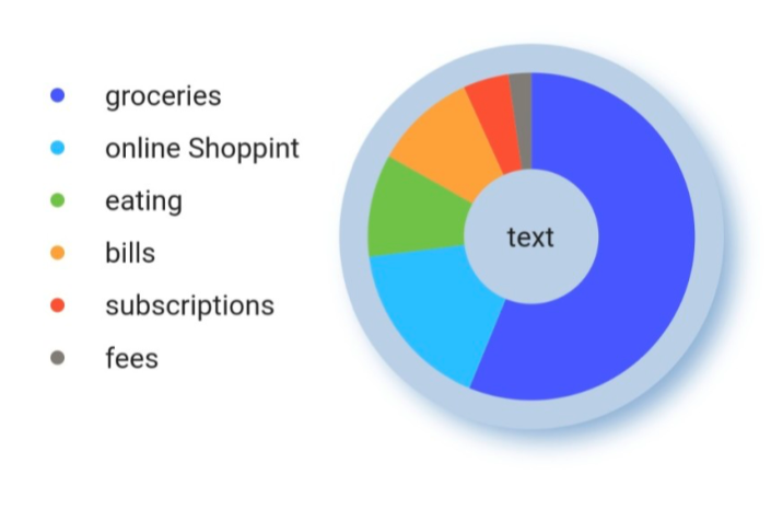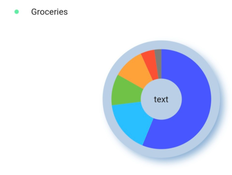 이후 pie_chart_view에 방금 만든 pie_chart를 연결하고 아래 위치에 Text 위젯을 추가하면 그래프 작은 원 안에 text를 삽입할 수 있다.