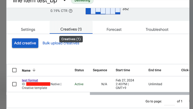 (클릭 횟수 확인 방법은 Creative 부분에서 clicks 부분을 확인하거나 report 기능을 이용하면 된다.)
