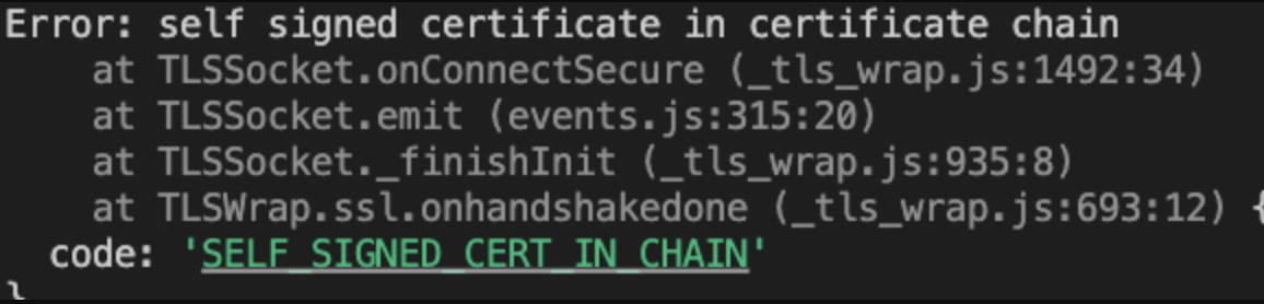 보통 HTTPS 연결 시 서버의 인증서가 자체 서명되었거나 인증서 체인에 문제가 있는 경우 발생하는데, 나의 경우에는 회사의 인증서 설정이랑 충돌이 났었다.