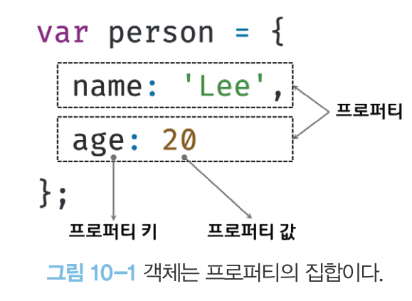 - 객체는 0개 이상의 프로퍼티로 구성된 집합이며, 프로퍼티는 key와 value로 구성된다.
