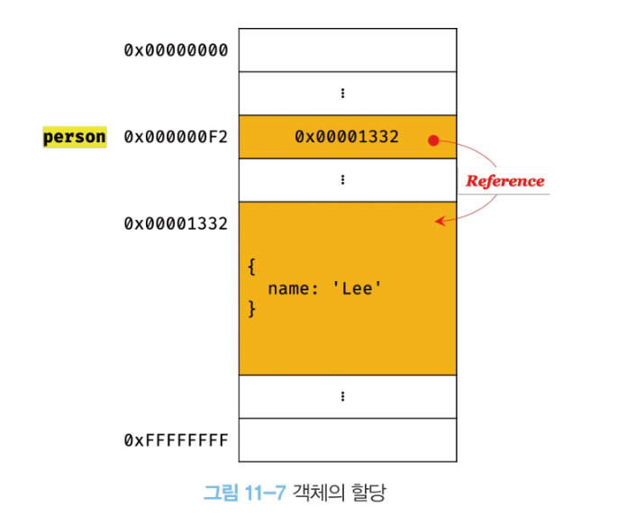 - 원시 값을 변수에 할당하면 변수(확보된 메모리 공간)에는 실제 값이 저장 된다. 객체를 변수에 할당하면(확보된 메모리 공간)에는 참조 값이 저장된다.